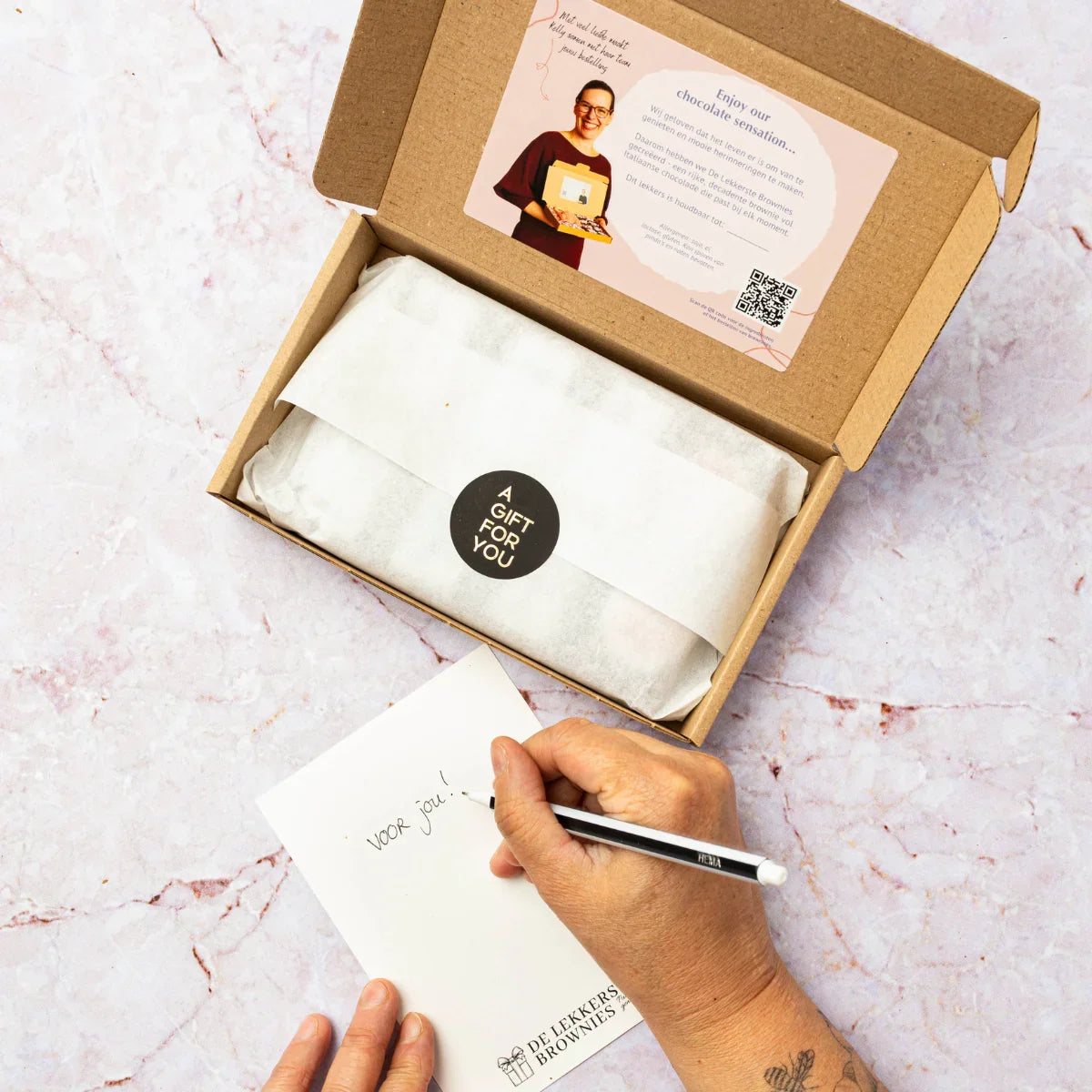 Ik geloof niet in standaardoplossingen of bulkcadeaus die vooral praktisch zijn. Ik geloof in iets kleins dat klopt. In aandacht. In iets wat met zorg is gemaakt en met net zoveel zorg wordt verstuurd.